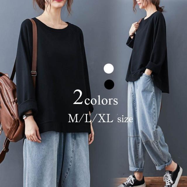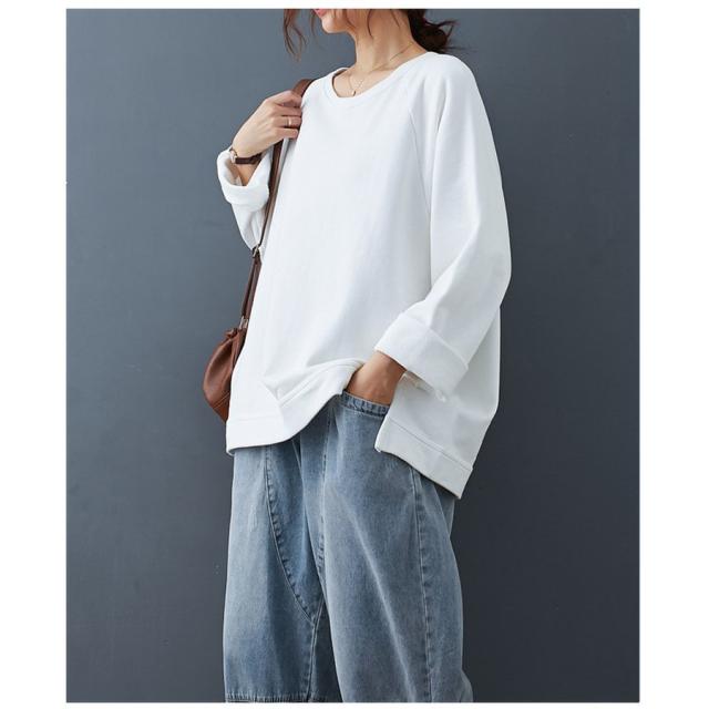 Tシャツ レディース トップス 40代 秋冬 新作 長袖Tシャツ おしゃれ 韓国風 きれいめ カジュアル シンプル ゆったり 30代 20代 白 黒