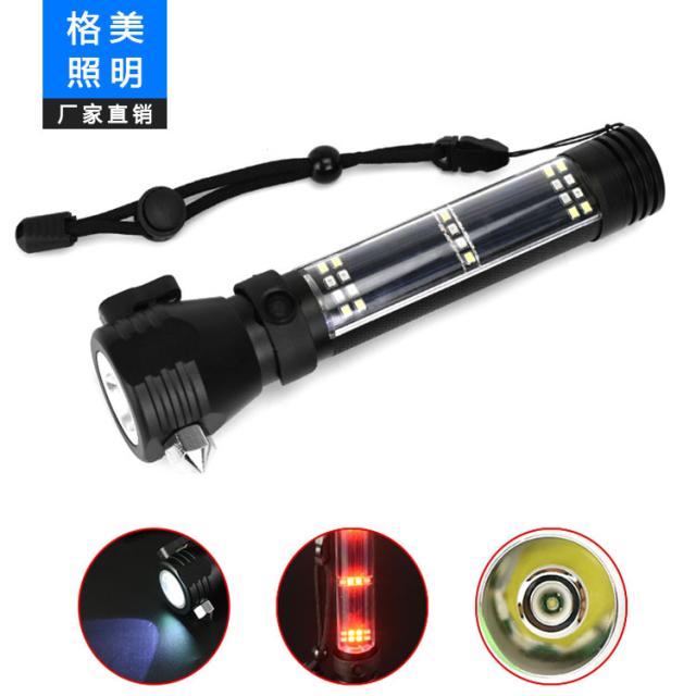 ソーラーセーフティハンマー懐中電灯多機能USBカー緊急懐中電灯