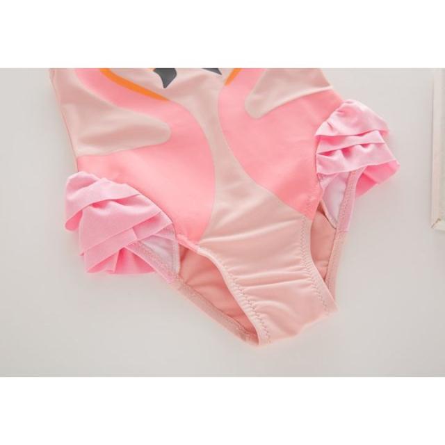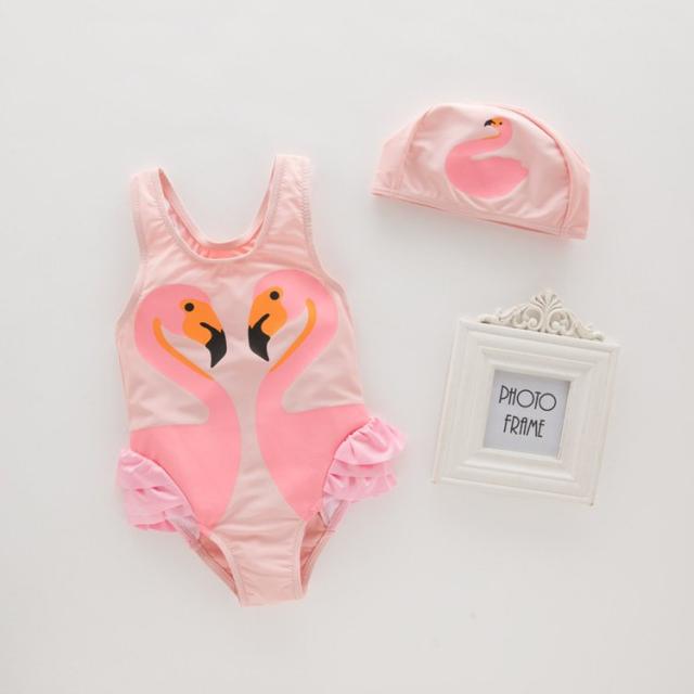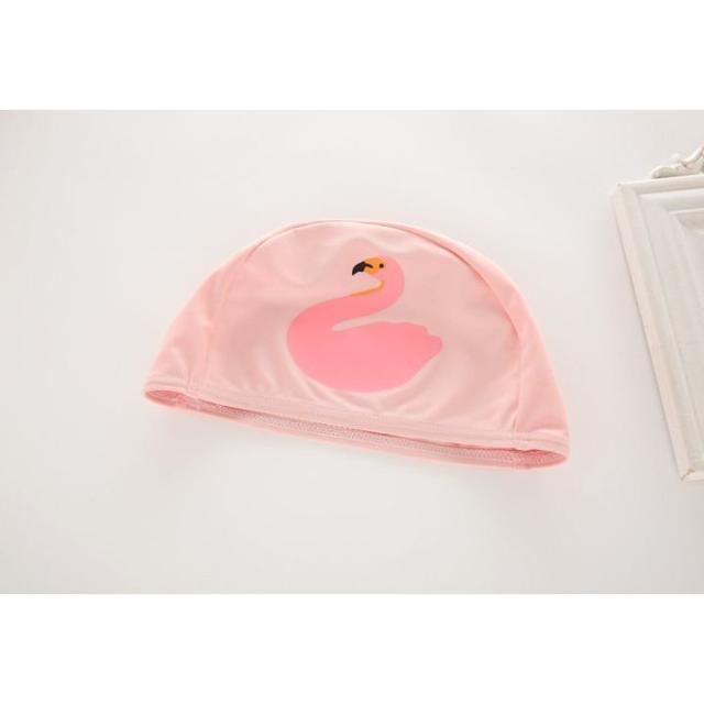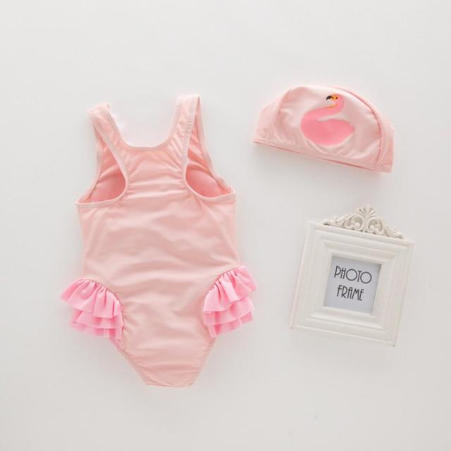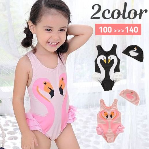 水着 2点セット キッズ 子供用 女の子 ワンピースタイプ スイムキャップ付き 帽子付き スワン 白鳥 フリル 可愛い おしゃれ プール 海 スイムウ
