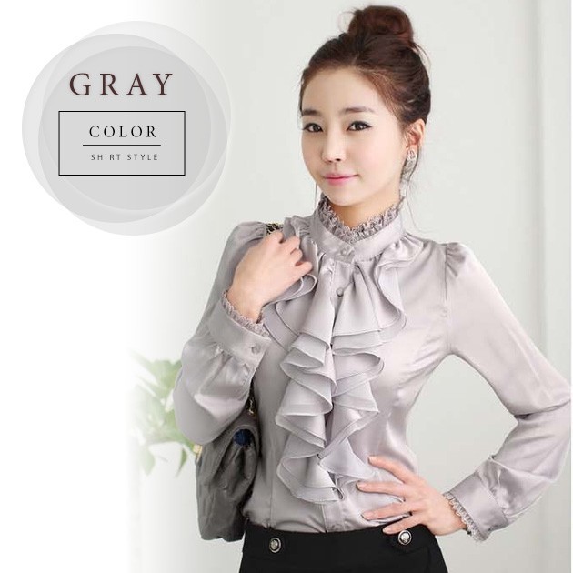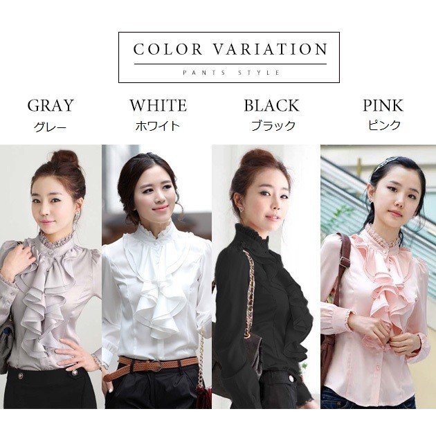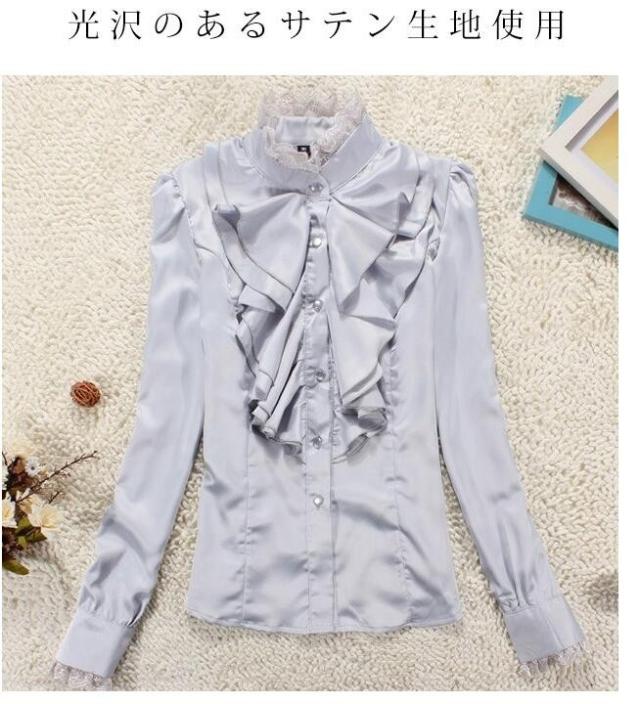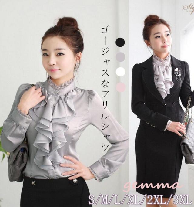 フリル ブラウス レディース シャツ ゴージャス 豪華 優雅 パーティー 光沢ブラウス 二次会 発表会 演奏会 卒園式 入学式 卒業式 大きいサイズ
