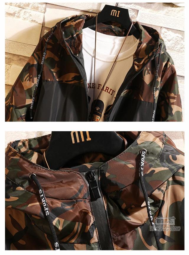 迷彩ジャケット マウンテンパーカー メンズ ミリタリー ブルゾン アウター 切り替え 迷彩柄 春 秋 ジャケット