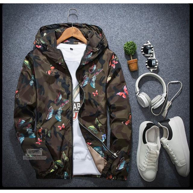 ウインドブレーカー レディース おしゃれ ジャケット 蝴蝶柄 マウンテンパーカー メンズ リブブルゾン 薄手 柄物