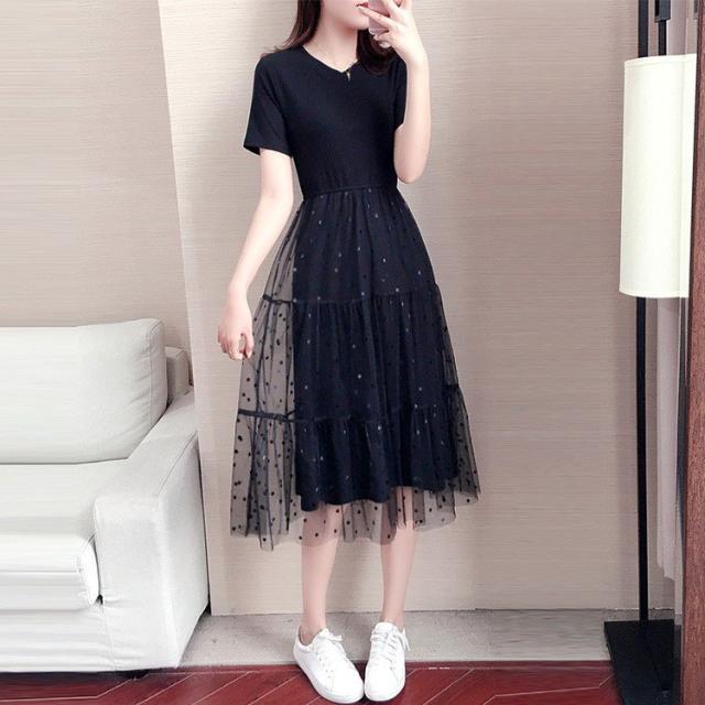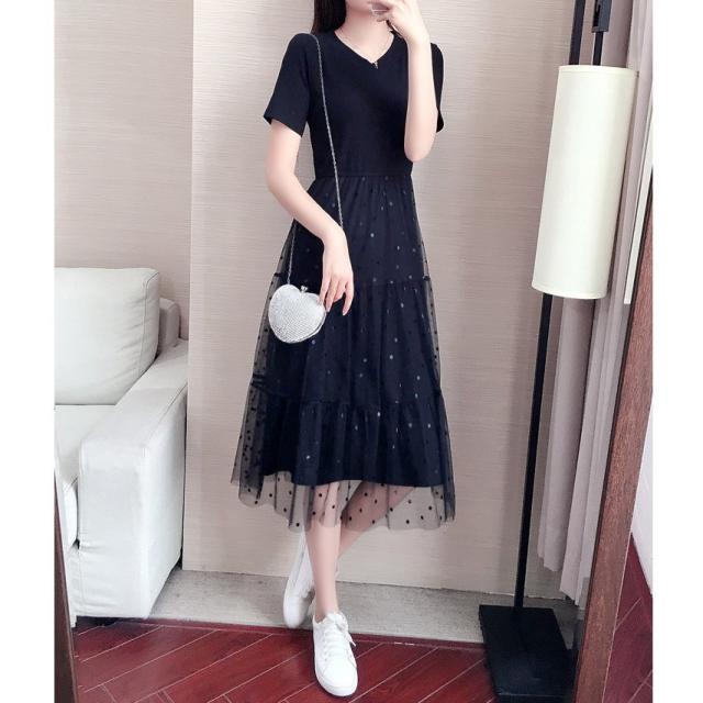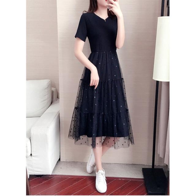 マキシワンピース レディース 40代 ワンピース 春 夏 マキシワンピース 半袖 ドット柄 チュール スカート オシャレ 大きいサイズ 着痩せ 大人 可愛い 30代 50代