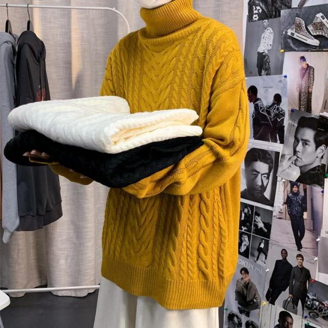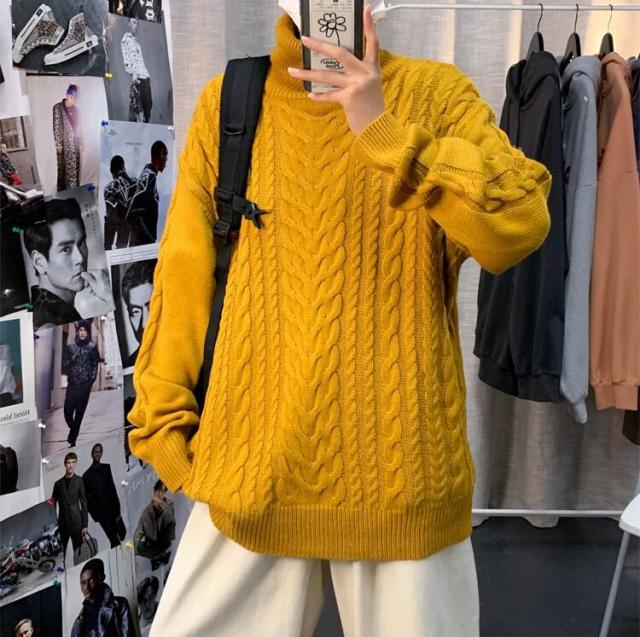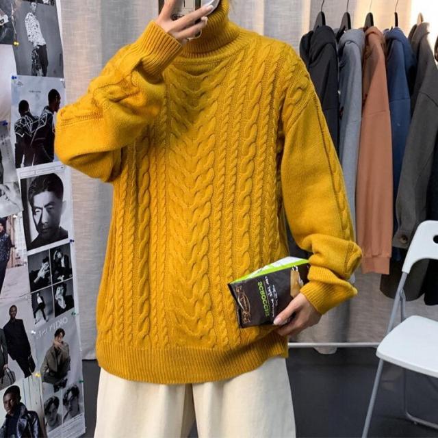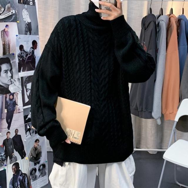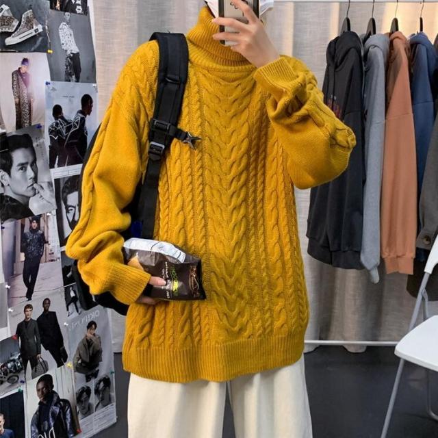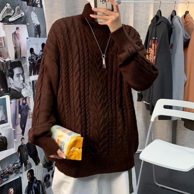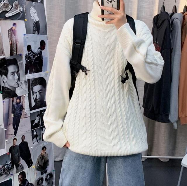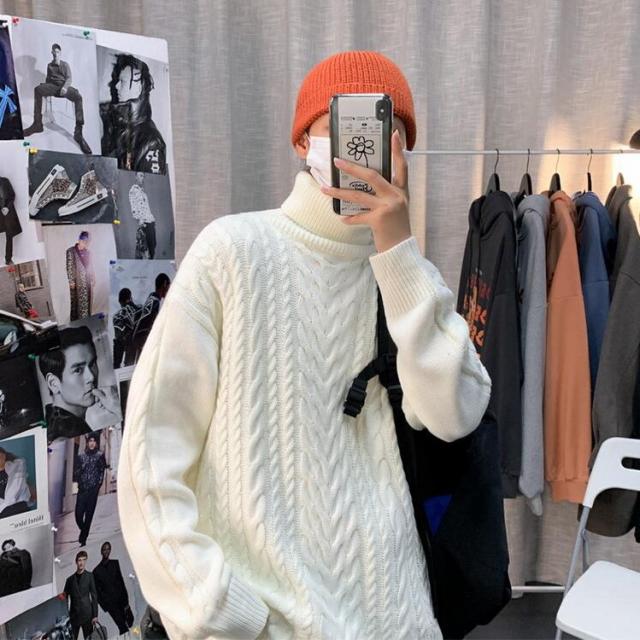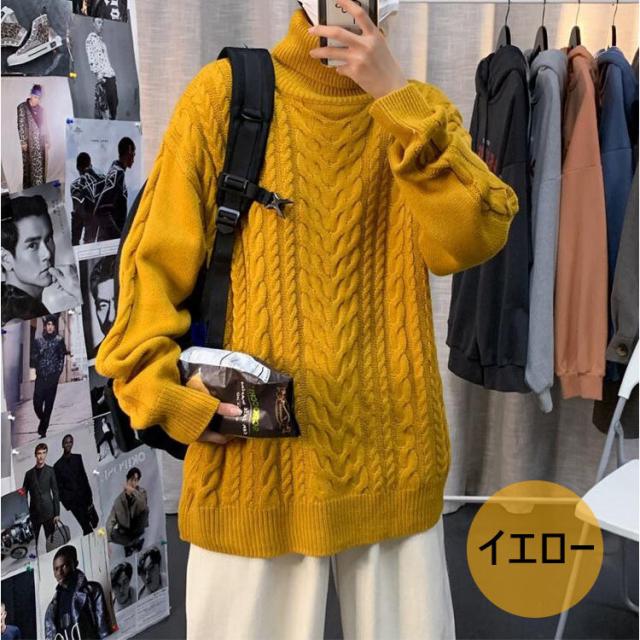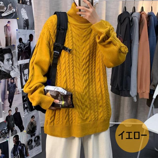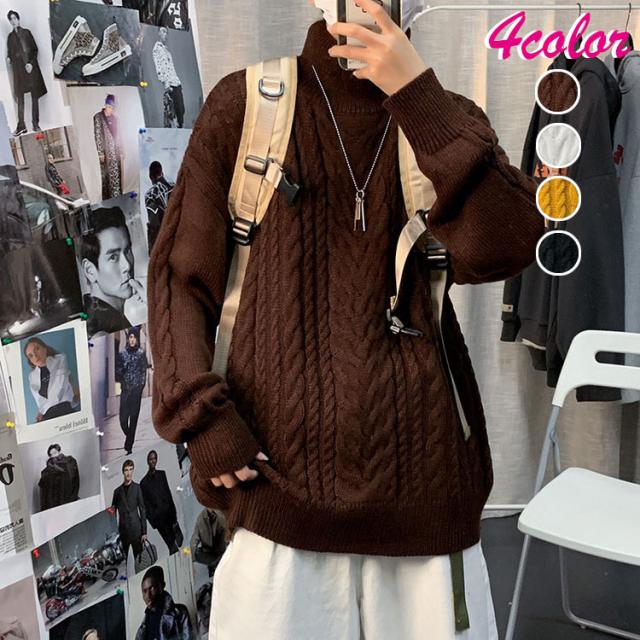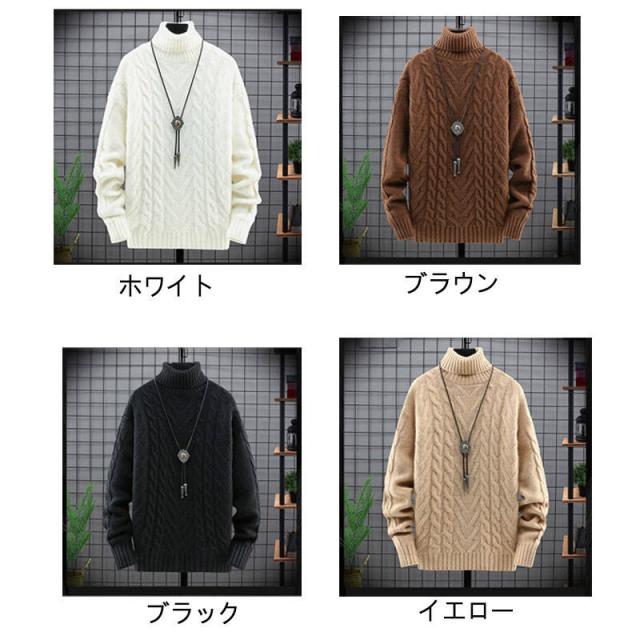 ニットセーター メンズ 長袖セーター ハイネック 防寒セーター ケーブル編みゆったりセーター 秋冬 カットソー 通学通勤 ビジネス カジュアルニットトップス