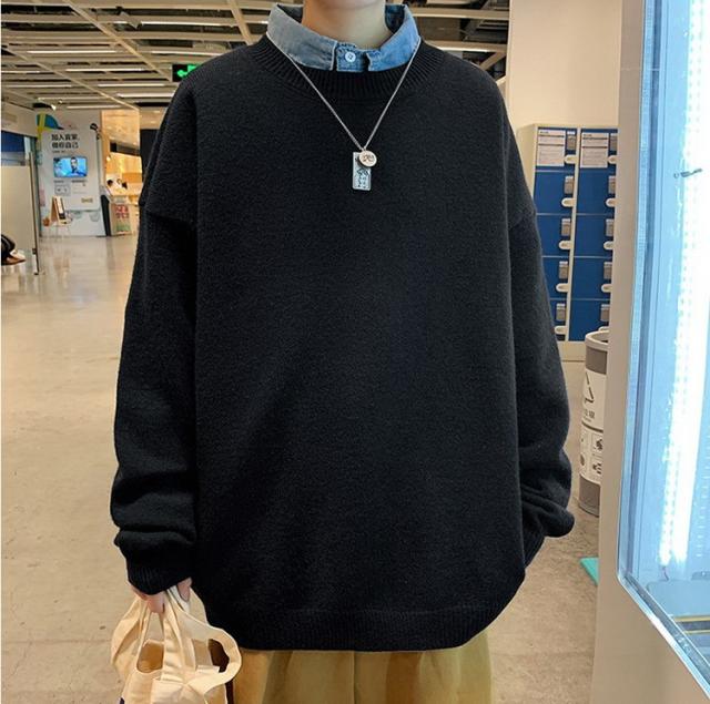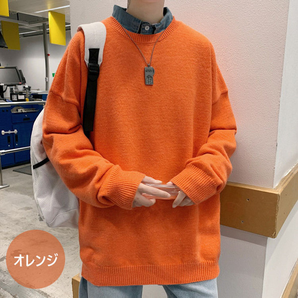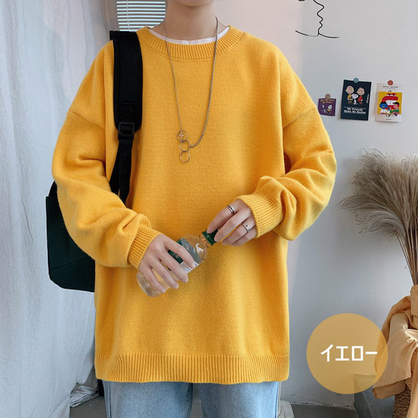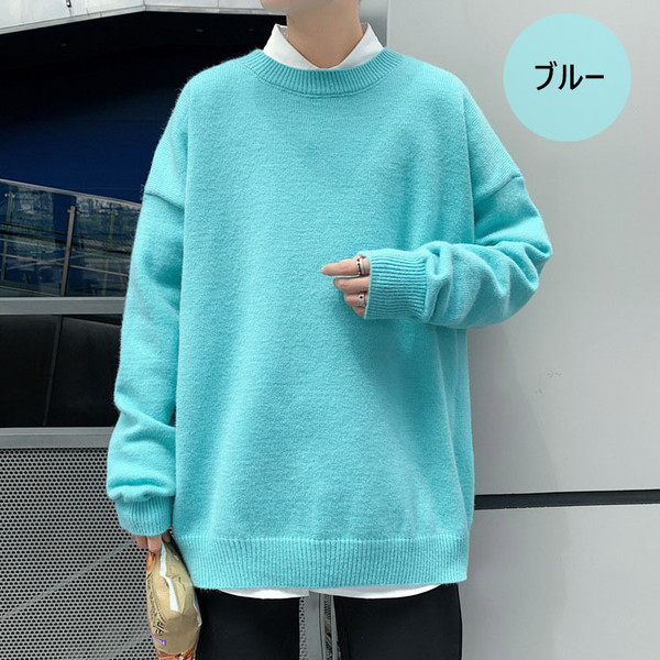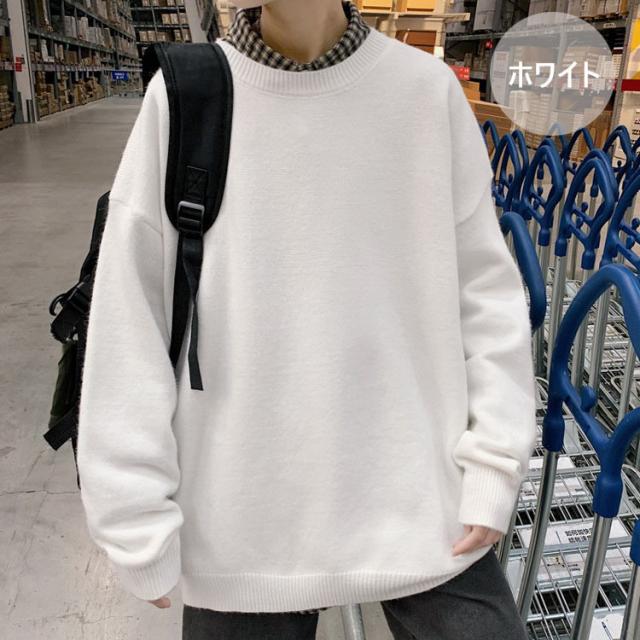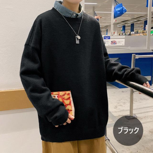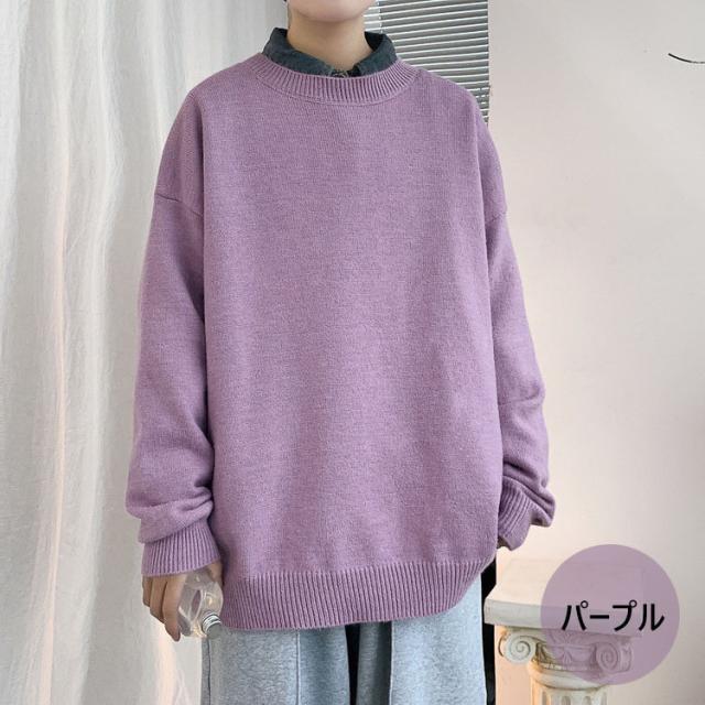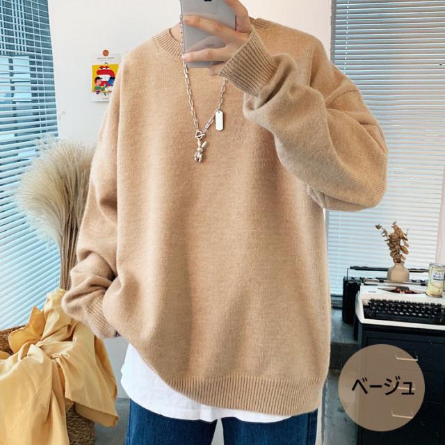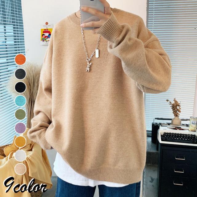 ニットセーター メンズ 長袖 無地セーター 防寒セーター ゆったりプルオーバーセーター 人気9色 秋冬 インナーカットソー オシャレ カジュアルニットトップス