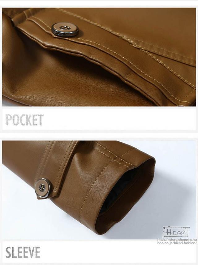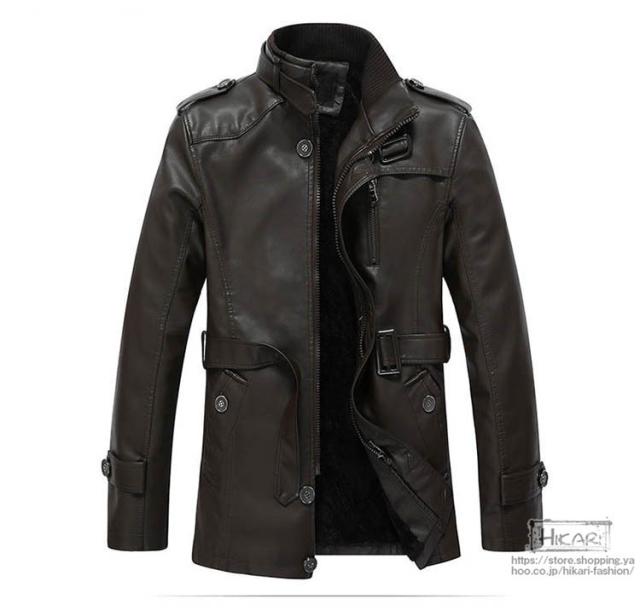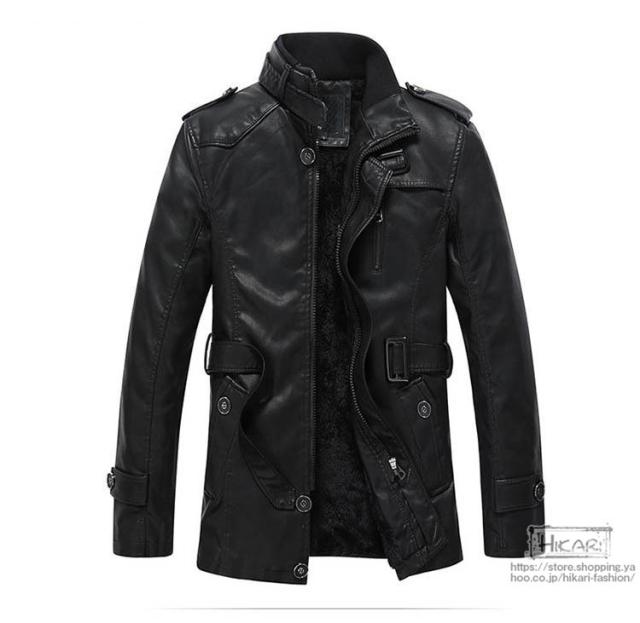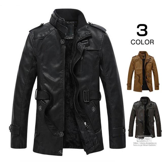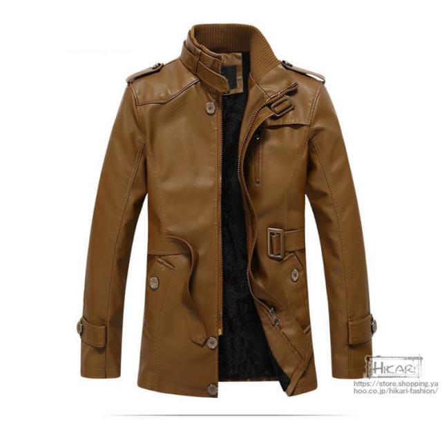 トレンチコート メンズ レザーコート 裏起毛 コート 防寒 保温 アウターウェア ライダース レザージャケット