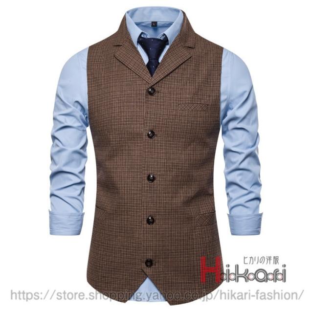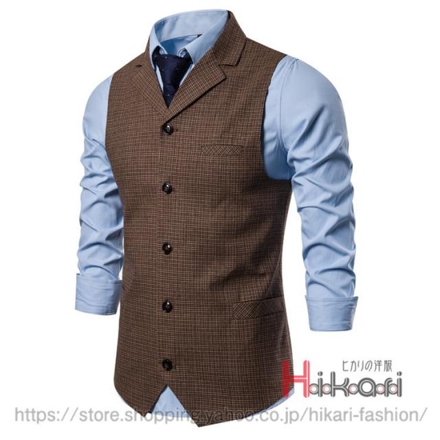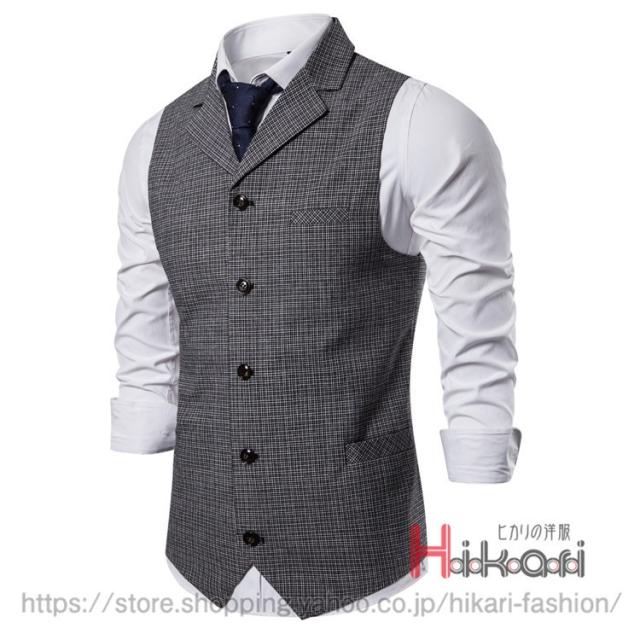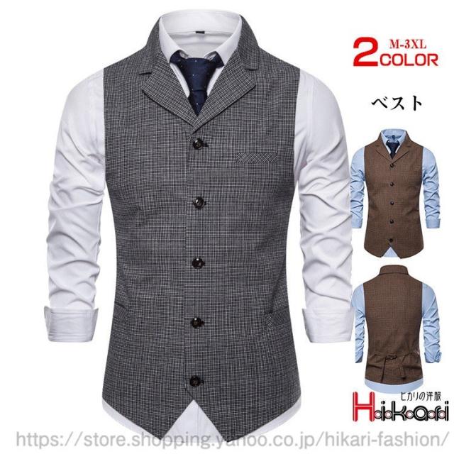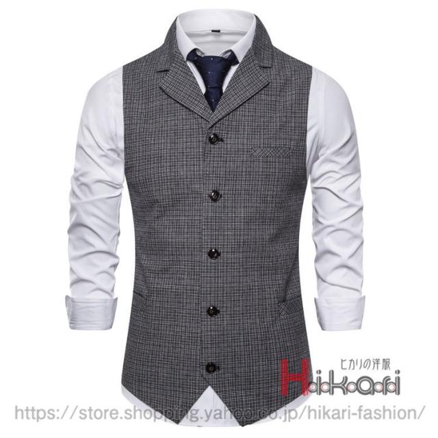ビジネスベスト メンズ ジレベスト スーツベスト 千鳥格 お兄系 ベスト チョッキ 前開きベスト フォーマル 通勤