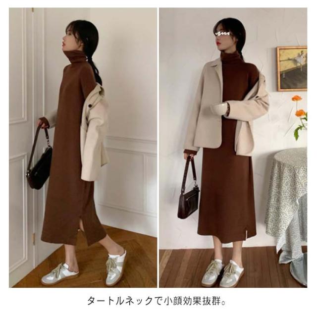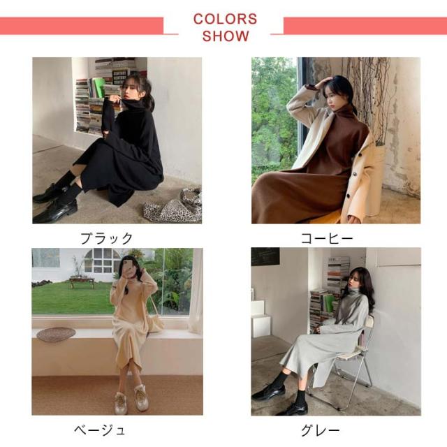 | 体型力バーも叶える賢いカタチ。 ロング丈のラインシルエットで自然に細見え&脚長見せ。 タートルネックで小顔効果抜群。 サイドスリット入りで足さばきも良く、こなれ感のある印象にみせてくれます。 デニムやレギンス等を重ねたカジュアルコーデからアクセや小物で差をつけた少しキレイめなコーデまで幅広く着まわせるオススメitemです | |