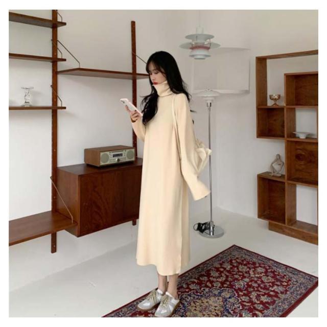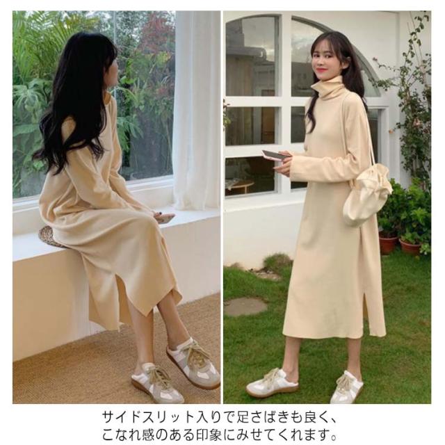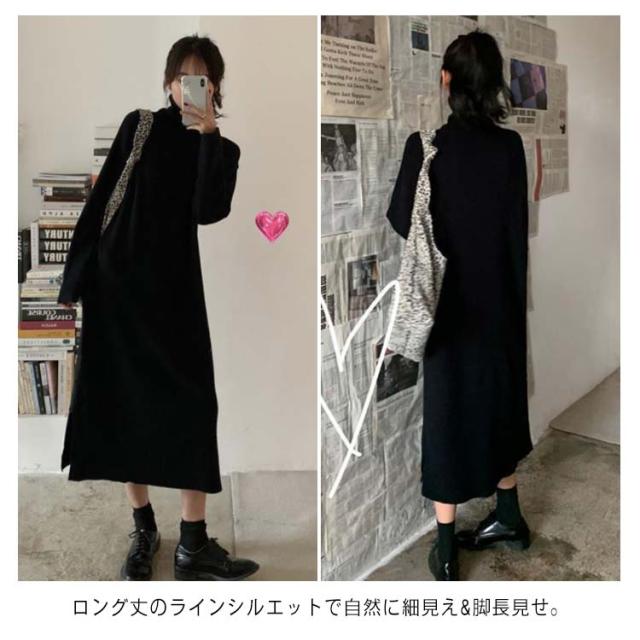 ワンピース 長袖 ロング 秋 冬 送料無料 タートルネック きれいめ 大人 ロング丈 リラックススウェットワンピース 無地 スエット 秋服 レディース マキシ ルームウェア マタニティワンピース ひざ下 膝下 大きめ 大きいサイズ