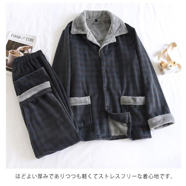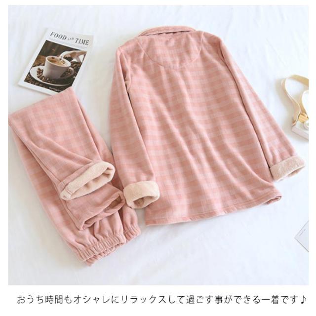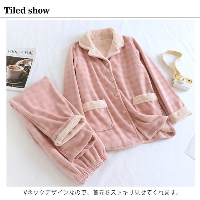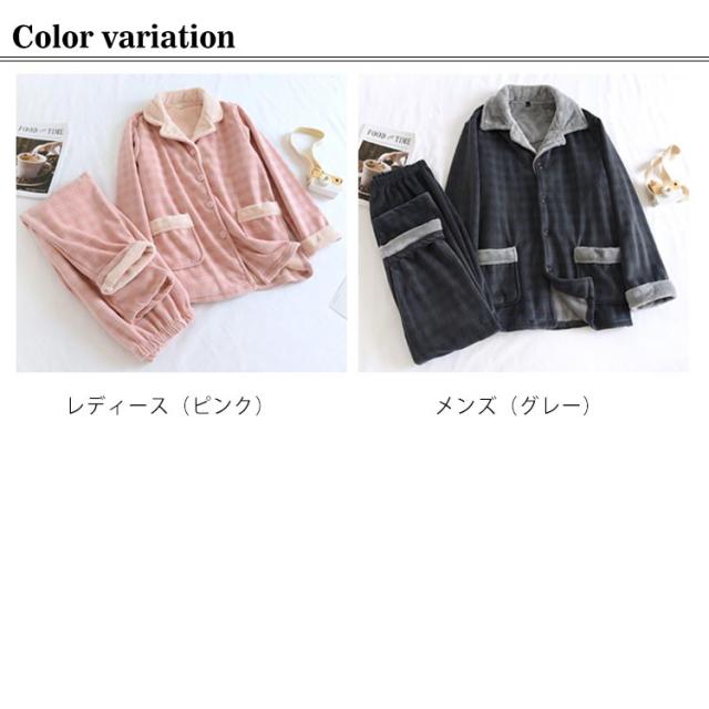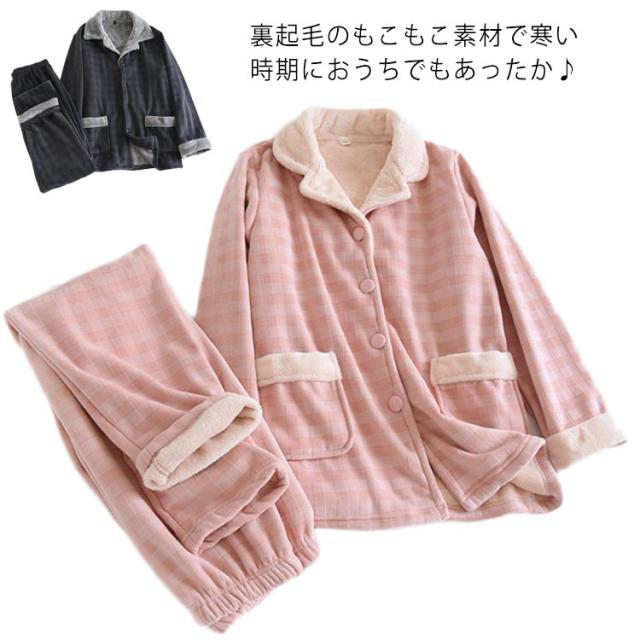 ルームウェア パジャマ レディース メンズ 冬用 長袖 前開き 裏起毛 あったか 寝巻き 暖かい 防寒 保温 部屋着 長ズボン トップス チェック柄 上下セット セットアップ シンプル おしゃれ かわいい 大きいサイズ ポケット 付き カップル お揃い