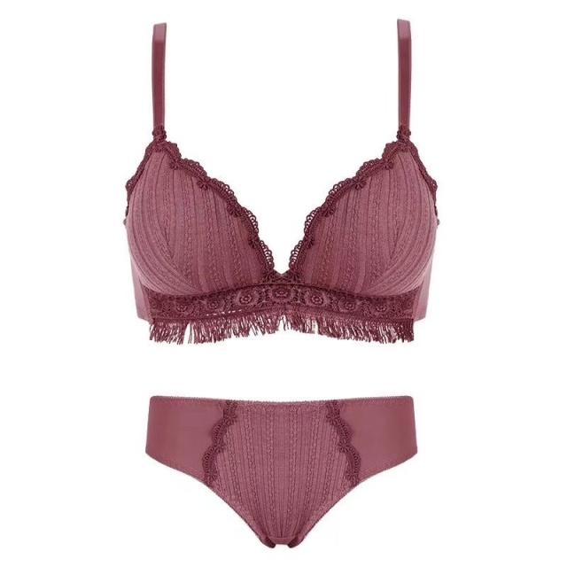 ブラ ショーツセット ノンワイヤー ブラジャー ショーツ セット ノンワイヤーブラ セット フリンジ付 厚パット 小胸 下着 レディース セット 盛れる かわいい 楽ちん 締め付けない