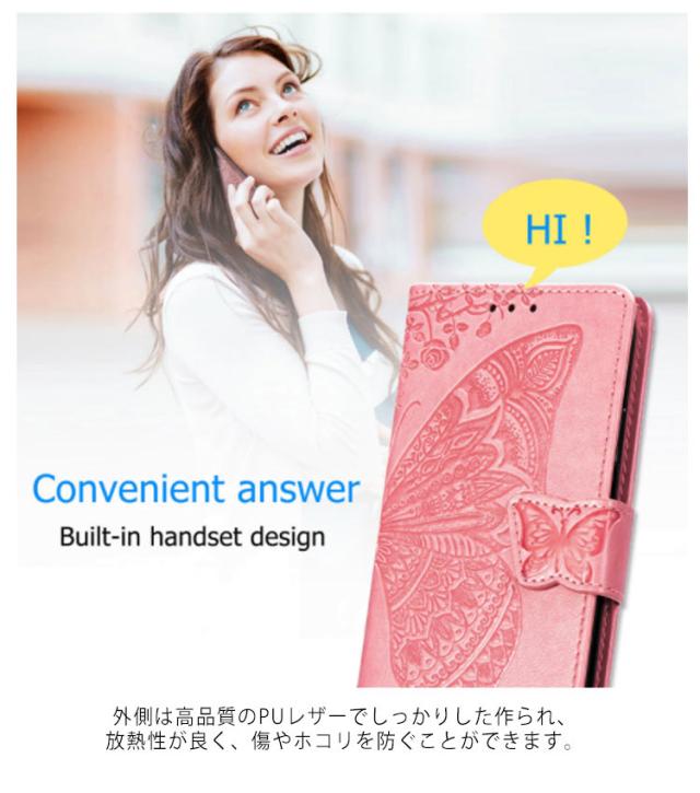 | 押し型と蝶柄の組み合わせ、綺麗でエレガントな雰囲気があります。 外側は高品質のPUレザーでしっかりした作られ、放熱性が良く、傷やホコリを防ぐことができます。 内側は柔らかいTPU素材で装着簡単で本体を傷つけない。 ストラップホールあり、落下防止用ストラップを付けて携帯便利です。 横置きスタンドになり、ケースを付けたままで、簡単に本体を立たせることにより、手軽に動画などをお楽しみいただけます。 抜群な収納機能付きなので、クレジットカード、また紙幣やレシート、名刺などが入れられて超便利です。 ケースを装着したまま、電源ボタン、カメラ、音量ボタン、充電口などを自由に操作できます。 充電、ワイヤレス充電、無線充電に置くだけ充電影響が出ない。 | |