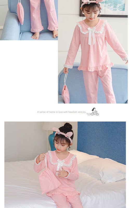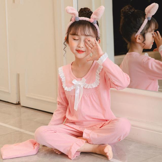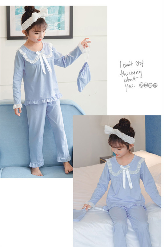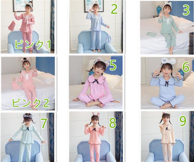 女の子 ルームウェア パジャマ 上下セット 2点セット 長袖 ワンピース 部屋着 寝巻き 子供用 セットアップ リボン 姫系 肌に優しい ナイトウェア ウエストゴム 綿 可愛い