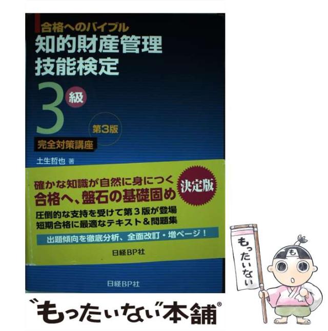 商品名:【中古】 知的財産管理技能検定3級完全対策講座 合格へのバイブル 第3版 / 土生哲也、日経デザイン / 日経BP社 [単行本]【メール便送料無料】