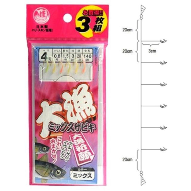 - 大漁ミックスサビキ 3枚組 ミックス 針8号-ハリス2号