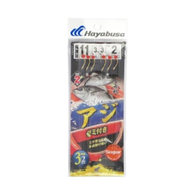 - 海戦アジ グミ付 シーガー 3本鈎2セット SE338 針11号-ハリス3号
