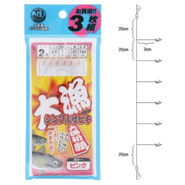 - 大漁シンプルサビキ 3枚組 針2号-ハリス0.6号 ピンク