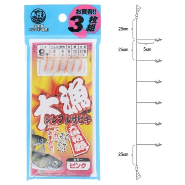 - 大漁シンプルサビキ 3枚組 針9号-ハリス3号 ピンク
