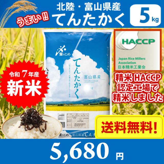 【令和7年産】【精米】北陸・富山県産 てんたかく 5kg 送料無料!!(北海道は別途700円かかります。沖縄配送不可)