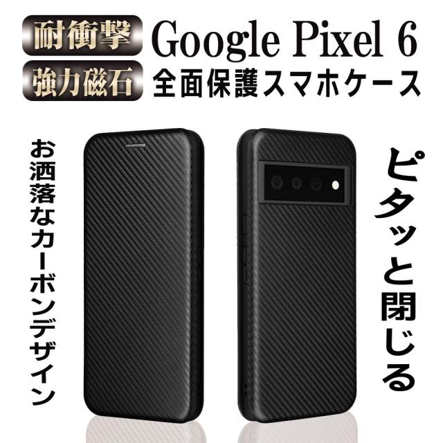 【送料無料】Google Pixel 6 スマホケース 手帳型 カーボンデザイン TPU マグネット式 カード収納 傷防止 グーグルピクセル6