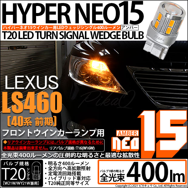 ピカキュウ,LED専門店,LEDバルブ,LED,SMD,T20S,T20シングル,ターンシグナルランプ,ウインカーランプ,DC12V車,NEO15,アンバー,全光束400lm,定電流回路搭載,ハイブリッド車対応,レクサス,LEXUS,LS,ls460,LS460,USF40,前期