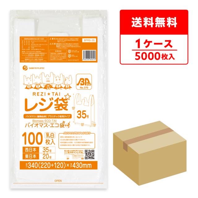 BPRS-35 バイオマスプラスチック使用レジ袋 西日本35号(東日本20号) 0.016mm厚 乳白 100枚x50冊 厚手タイプ ブロック有 送料無料