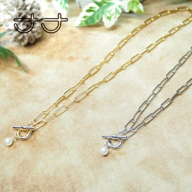 送料無料 チェーンネックレス カジュアル 40cm 小豆チェーン Pパール マルテル シンプル