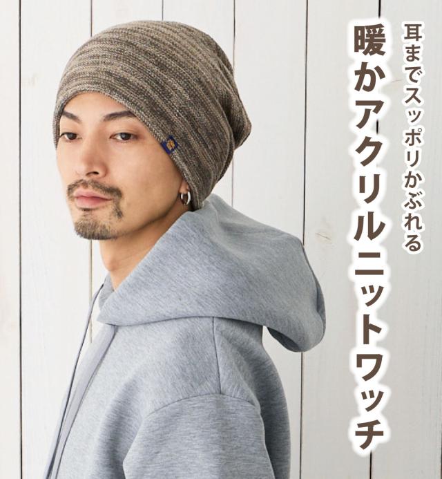 耳までスッポリかぶれる!深めの作りが嬉しい暖かアクリルニットワッチ。