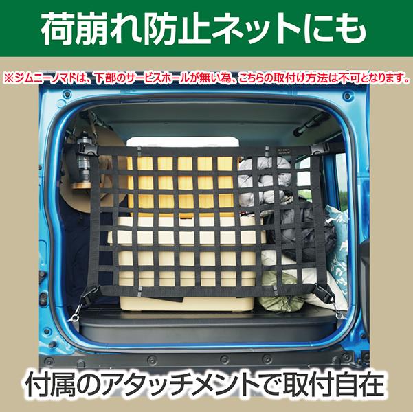 ※ジムニーノマドは、アイボルトを取り付ける左右下部のサービスホールが無い為、荷崩れ防止ネットとしての装着(ラゲッジ取付け)は不可。