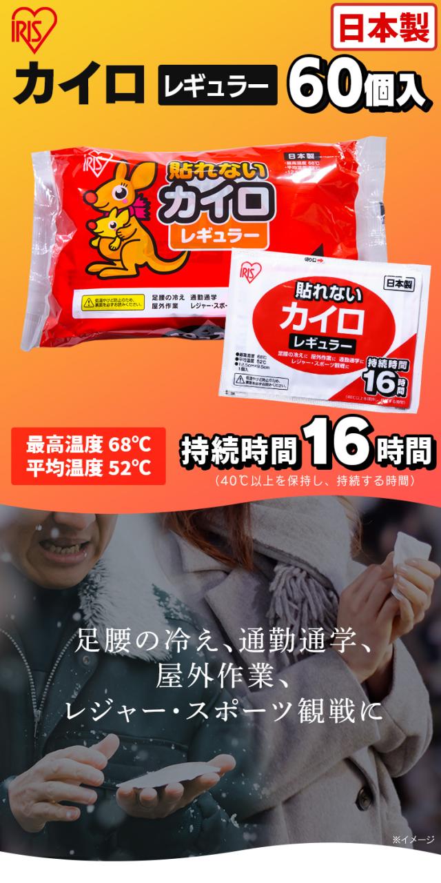 カイロ 貼らない レギュラーサイズ 使い捨て 貼れないカイロ レギュラー 60枚(10枚×6袋) レギュラーサイズ カイロ 貼れない 貼らない カイロ 使い捨て 使い捨てカイロ 16時間持続 備蓄 防寒 寒さ対策 まとめ買い 送料無料
