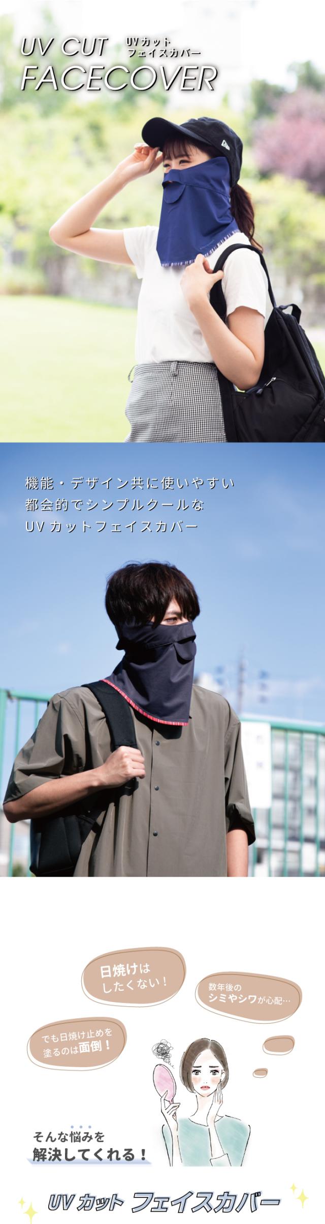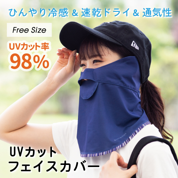 フェイスカバー uv フェイスガード uvカット マスク レディース 日焼け防止 日よけ 顔 紫外線対策グッズ テニスウェア ゴルフ テニス face cover アクセントボーダー