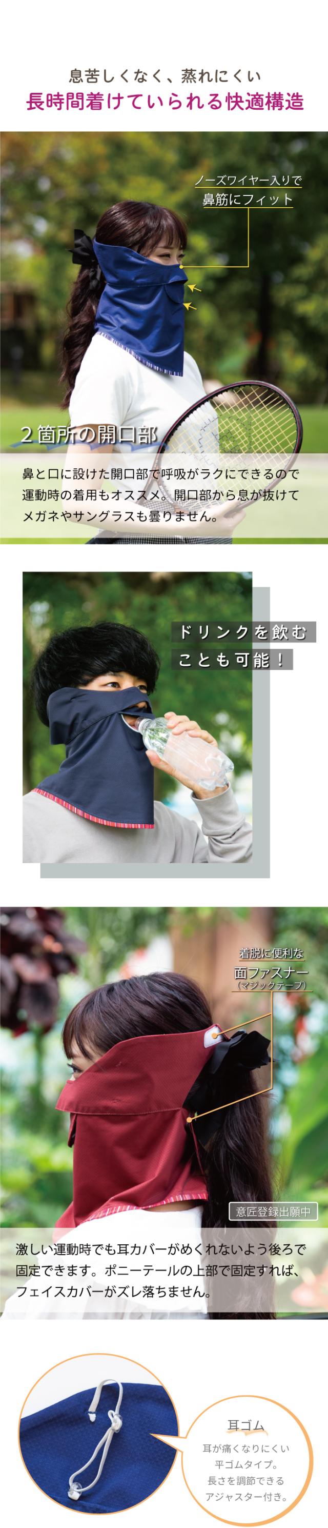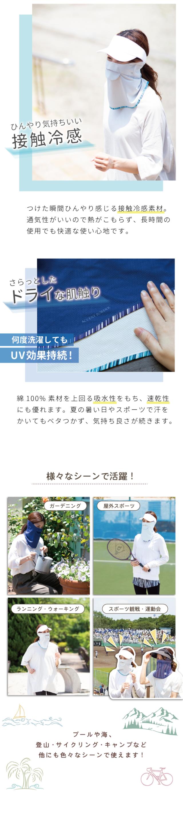 フェイスカバー uv フェイスガード uvカット レディース 日焼け防止 紫外線対策グッズ テニスウェア facecover ストライプ ボーダー アクセント ボーダー