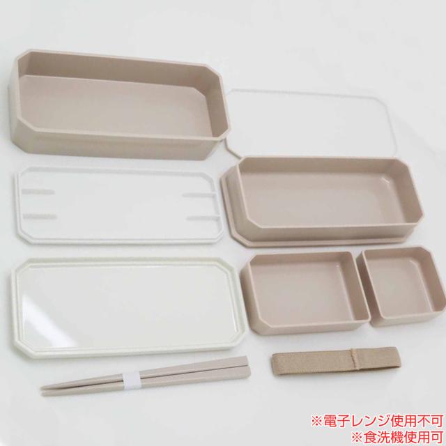 | 材質 | 上段・下段・お箸・中子×2:AS樹脂 上シール蓋・下シール蓋・仕切り:ポリプロピレン お箸:メタクリル樹脂 |