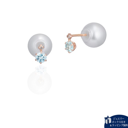 アクアマリンと添えたダイヤモンドがきらめく上品なピアス。パールキャッチ付きで後ろ姿も美しく魅せてくれます。パールを前にしても着けられる2WAY仕様も魅力です。※天然石を使用しているため、実際の色味や風合いが異なる場合がございます。