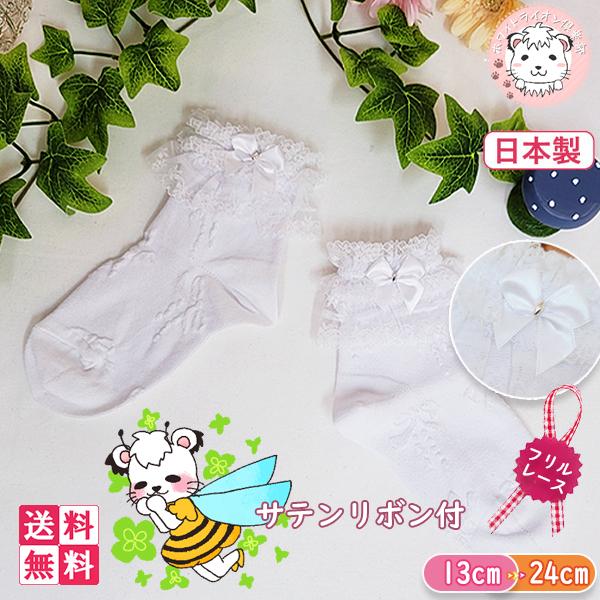 靴下 クルー丈ソックス 4足セット 女の子 フリル レース付き ソックス 編み模様入り 日本製 13-15cm/16-18cm/19-21cm/22-24cm