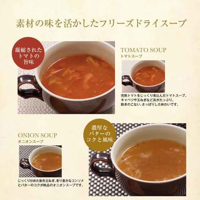中華スープ×4、オニオンスープ×4、トマトスープ×2