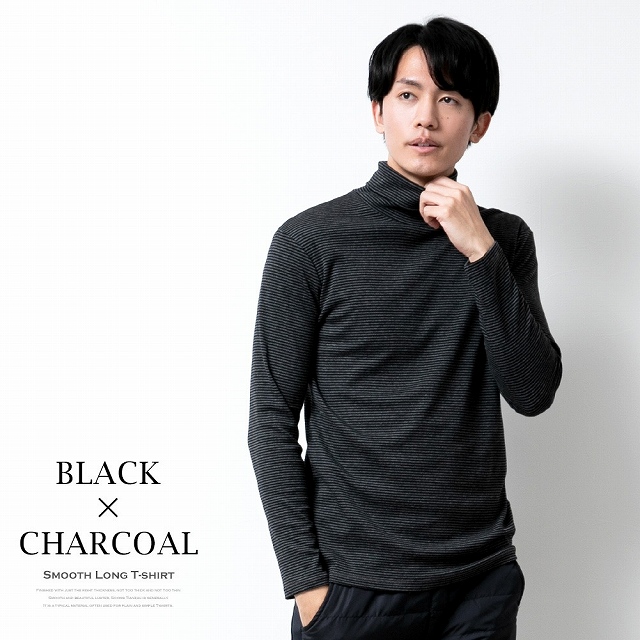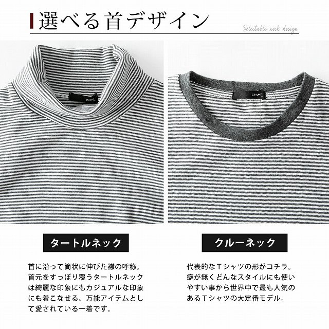 長袖tシャツ メンズ 長袖 tシャツ クルーネック ロンt タートルネック ハイネック Tシャツ 無地 おしゃれ 秋冬 ボーダー 黒 全8色 187-7200 187-7202 197-7203 197-7205