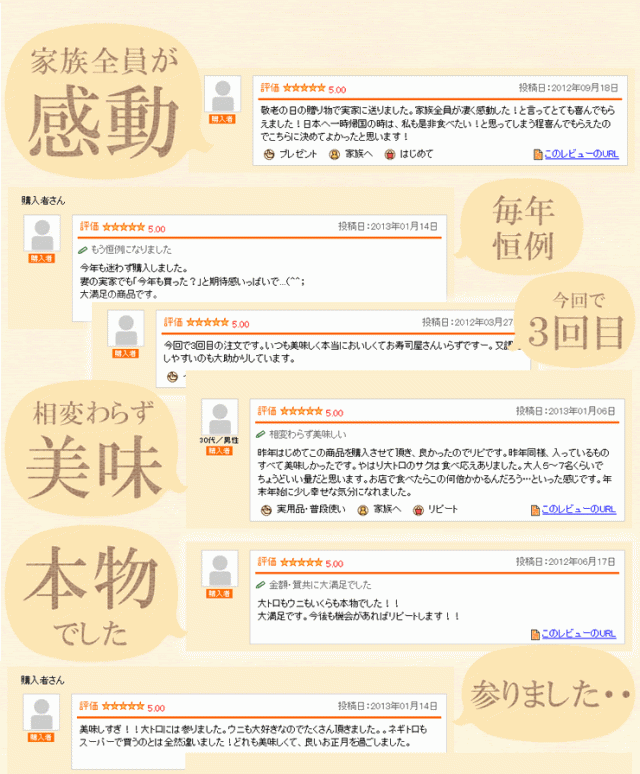 - 海鮮が好きな母に送りました。大変喜んでくれました。ありがとうございます。