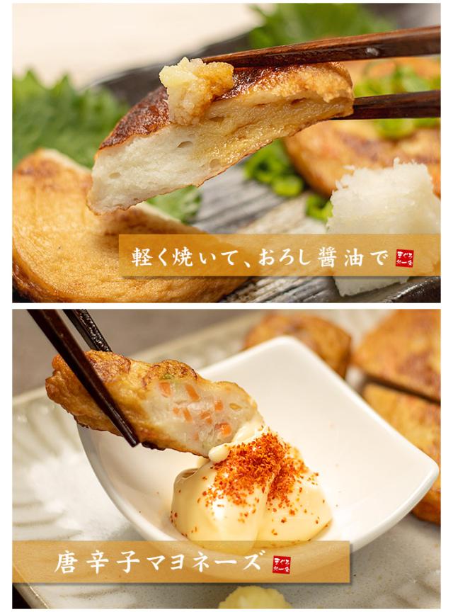 - 野菜の具タップリのさつま揚げで、とても美味しかったです♪お正月用にと思ってたのですが。。たまらずレンジでチンしただけで頂いてみたのですが味が美味しい〜!もう大ファンになりました。ありがとうございました...