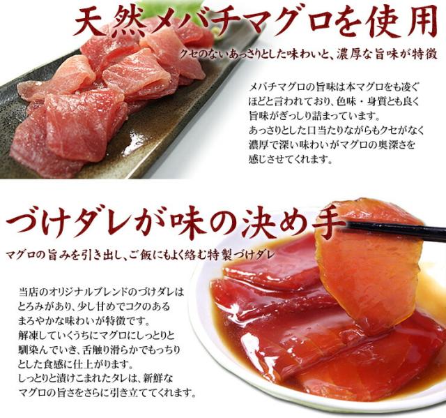 天然メバチマグロを使用し、当店オリジナルの特製タレで仕込みました。もっちりとした食感とご飯に絡むコクのあるタレが絶品です!解凍も流水でわずか5分!