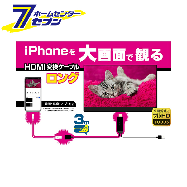 「HDMI変換ケーブル iPhone専用 3m KD-224 カシムラ」はホームセンターセブンが販売しております。