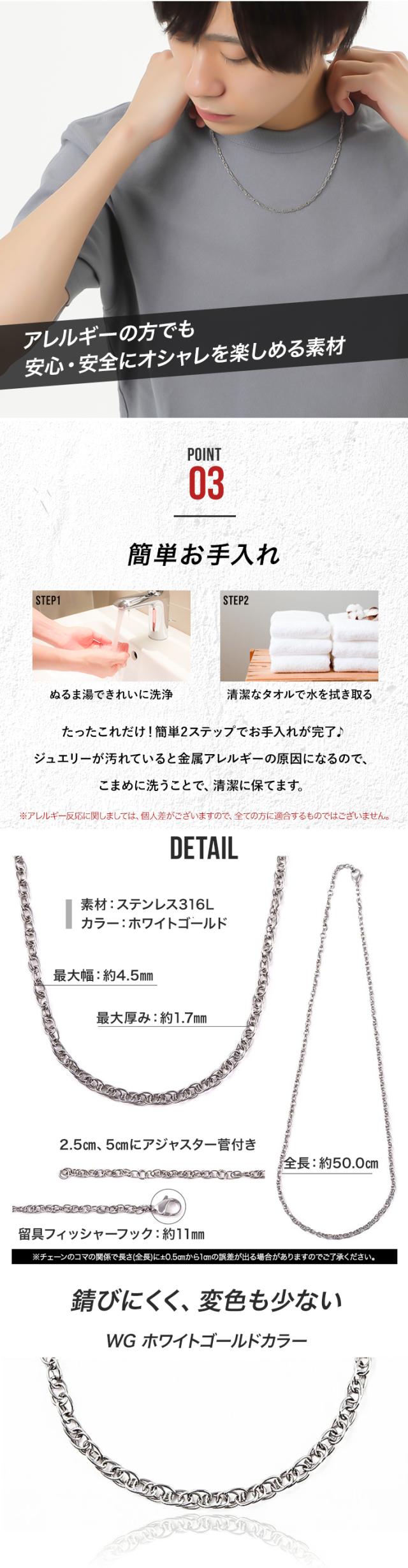 半額 ネックレス メンズ ステンレス 金属アレルギー対応 サージカル プチプラ お得! アレルギー つけっぱなし ホワイトゴールド PT WG 30代 40代ブランド アレルギーフリー 男女兼用 誕生日 クリスマス プレゼント ギフト アクセサリー レディース