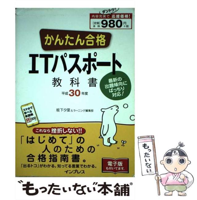 商品名:【中古】 かんたん合格ITパスポート教科書 平成30年度 (Tettei Kouryaku JOHO SHORI) / 坂下夕里 ラーニング編集部 / インプレス [単行本(ソフトカバー)]【メール便送料無料】