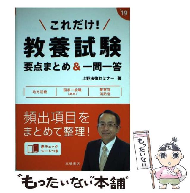 【中古】 これだけ!教養試験要点まとめ&一問一答 [’19] / 上野法律セミナー / 高橋書店 [単行本(ソフトカバー)]【メール便送料無料】