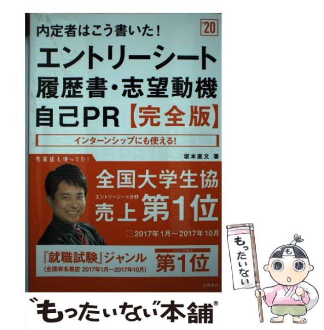 【中古】 内定者はこう書いた!エントリーシート・履歴書・志望動機・自己PR〈完全版〉 [2020年度版] / 坂本直文 / 高橋書店 [単行本(ソフトカバー)]【メール便送料無料】