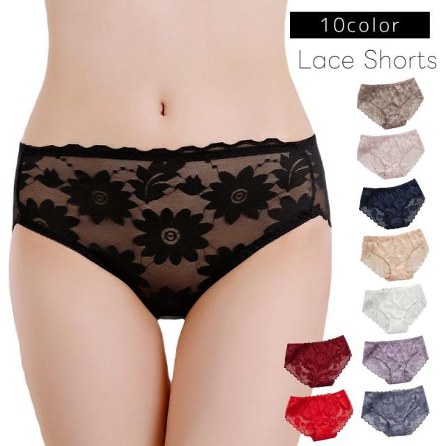 スタンダードショーツ フルバック レディース 花柄レース シースルー パンツ パンティー インナー 女性 下着 透け感 セクシー