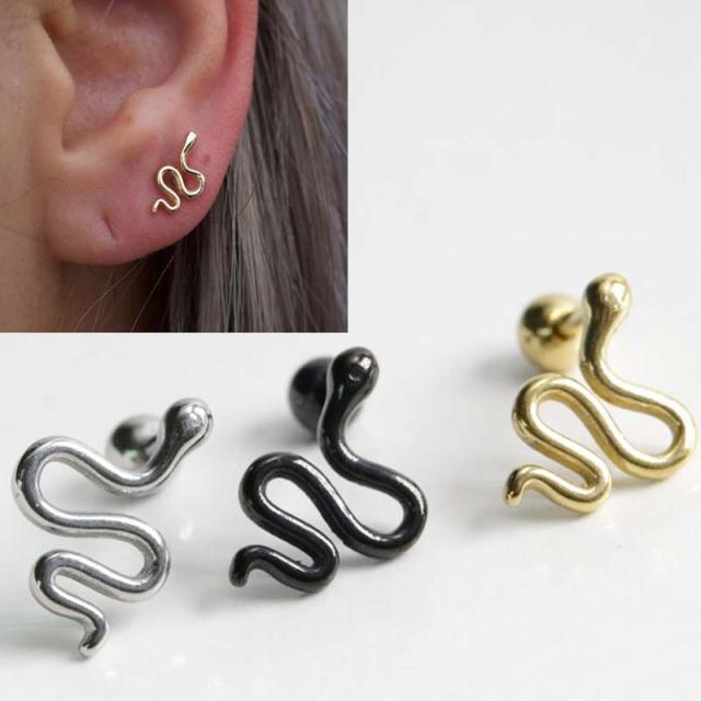 軟骨ヘリックスやトラガス、コンクやダイスにオススメのスネイクボディーピアス。シャフトが真っ直ぐのバーベルスタッドは装着も簡単なので男性からも女性からも人気。素材も安心のステンレス。シンプルでへびへび過ぎないのでさりげなくコーデが楽しめると大人女子や男子からも人気。メンズでもレディースでも使えるのでペアルックやプレゼントにもおすすめです。干支ピアスの巳ピアスとしても!