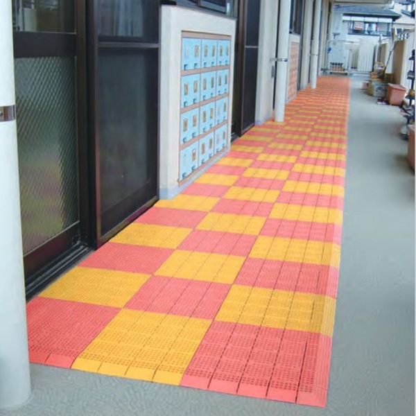 プールサイド、シャワー室、ロッカールーム、トイレ、ベランダなど水気の多い所に最適の抗菌スノコです。カッターで簡単に切れるので、使用する場所に合わせて施工できます。