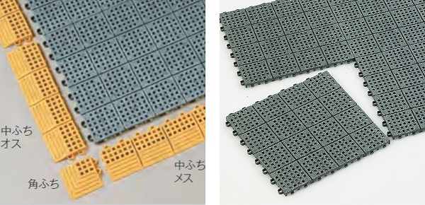 30cm角のジョイント式で、きっちり敷き詰めたり足元だけの必要なサイズやその場に合った形に施工できます。また、すり減ったところだけ部分的に交換できるので、便利で経済的です。