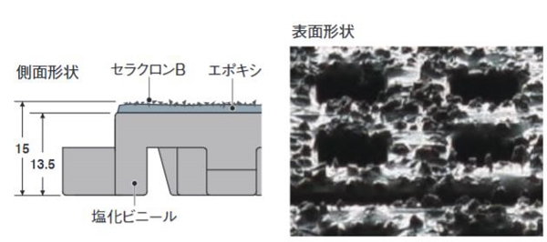 ●表面に硬質骨材(セラクロン)を接着加工しているため、水や油が付いても滑り止めの効果が損なわれません。
